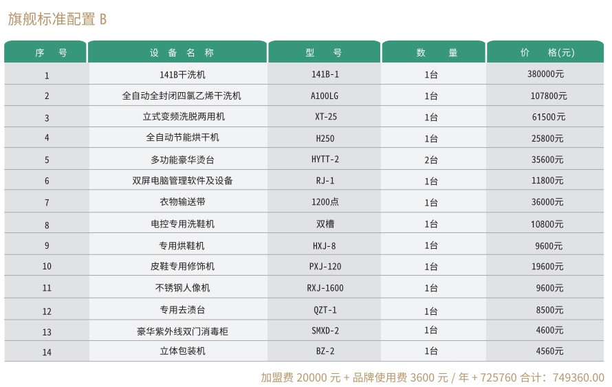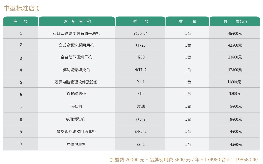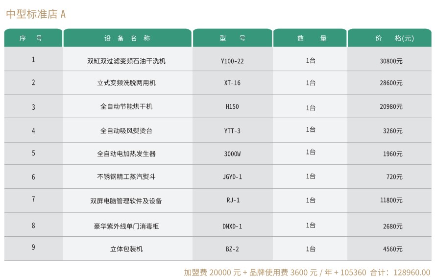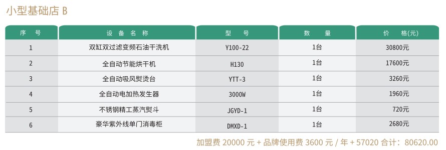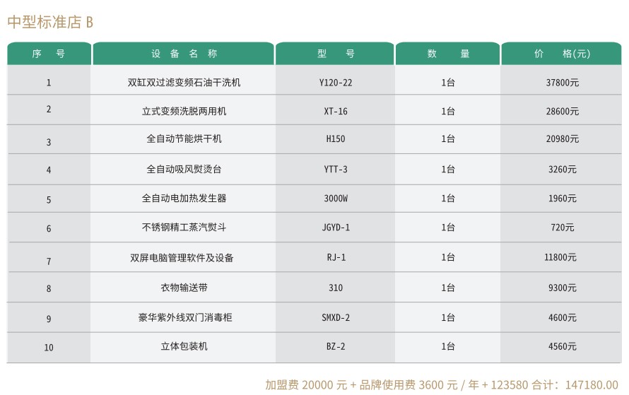 赛维洗衣干洗店有小型店、中型店、大型店、旗舰店等多种组合模式,每种模式又有多个不同的方案,以适用不同的创业人群需要,详情请往下看。